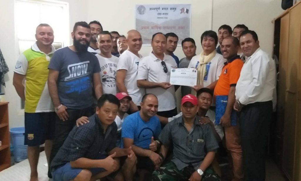 पोखरा । रोजगारीका लागि दोहा कतारमा पुगेका कास्कीको अन्नपूर्ण गाउँपालिकाका नागरिकहरुले कतारमा गठन गरेका अन्नपुर्ण बचत समूहको प्रथम बार्षिक साधारण सभा सम्पन्न गरेका छन् । २०७५ साल बैशाखमा गठन भएको उक्त समूहको गत शुक्रबार (जेठ ३ गते) प्रथम साधरण सभा सम्पन्न गरेको प्रभु गुरुङले जानकारी दिए ।