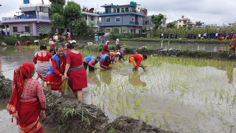 असार १५ गते । देशभर राष्ट्रिय धान दिवस तथा राेपाइँ महाेत्सव मनाइएकाे छ । मानाे राेपेर मुरी फलाउने नेपाली परम्परा अनुसार वर्षाैंँदेखि धान राेपाइँलाई पर्वकाे रूपमा मनाइँदै आइएकाे छ ।