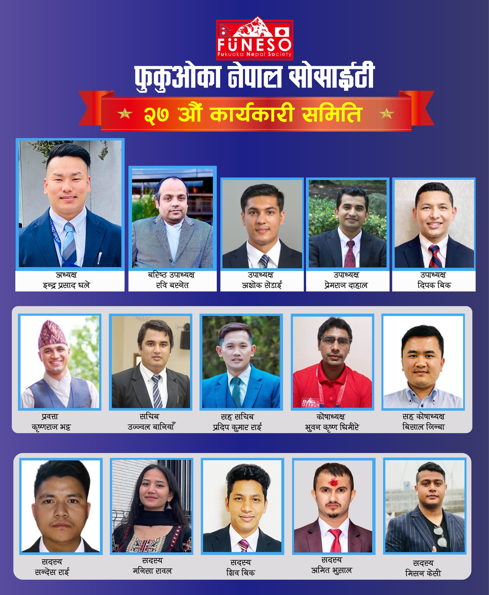 जापानको फुकुओकामा रहेका नेपालीहरु पूरानो सामाजिक संस्था फुकुओका नेपाल सोसाइटी (फुनेसो) को २७ औं अधिवेशनले नयाँ नेतृत्व चयन गरेको छ ।