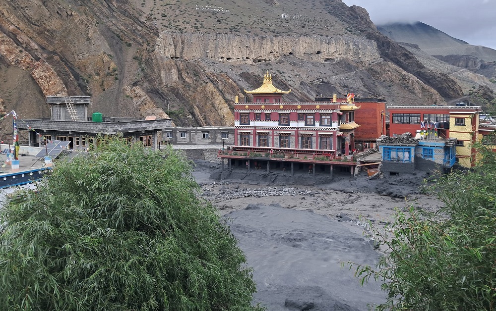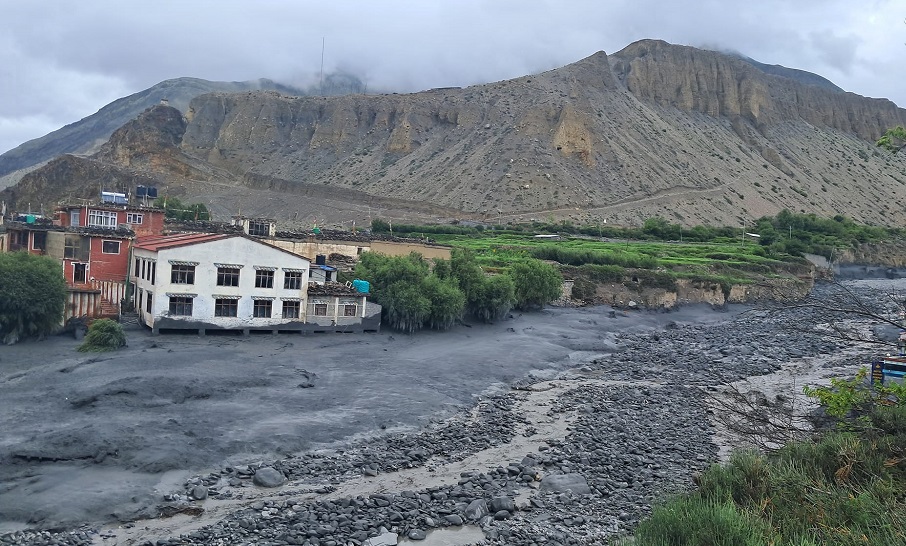 कागबेनीमा आइतबार साँझ ठाँडो मुक्तिनाथ कागखोला थुनिएको थियो। जोखिम बढेपछि त्यहाँका स्थानीयलाई सुरक्षित स्थानमा सारिएको थियो।