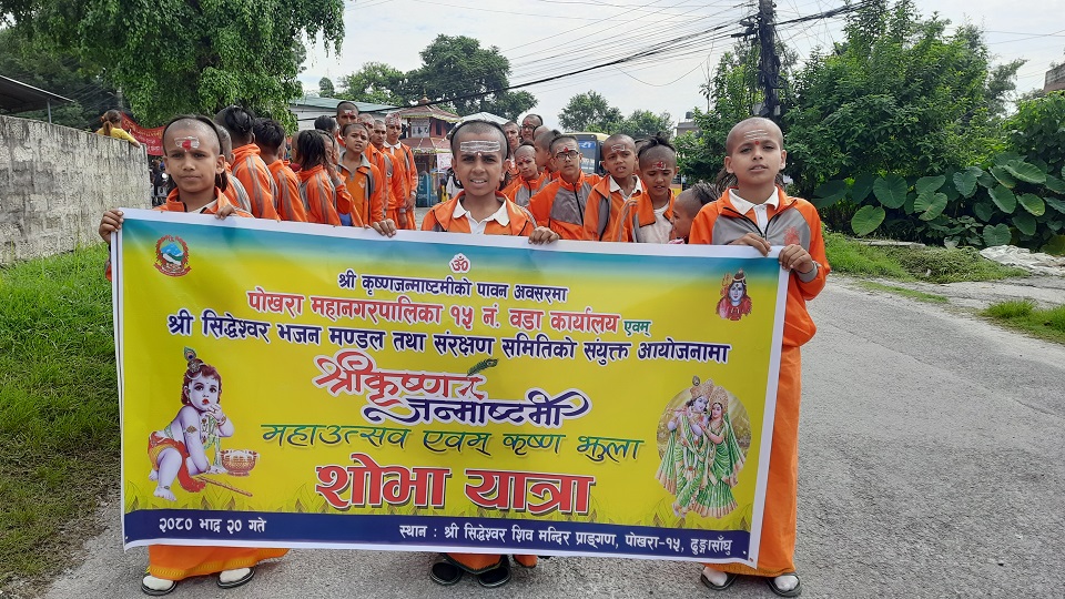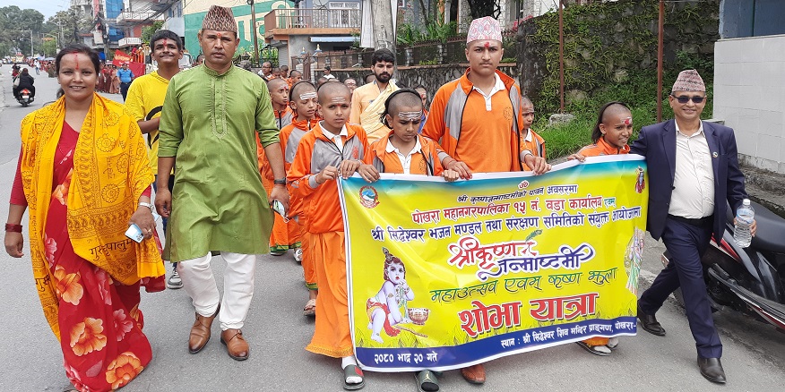 यसैगरी, पाेखरा १५ स्थित श्री कृष्ण मन्दिर सञ्चालक समितिले पनि शाेभायात्रा निकालेकाे छ । पाेखरा १५ मा निकालिएका यी २ शाेभा यात्रामा हजाराैं पाेखरेलीले सहभागिता जनाए । महिला समूह, टोलविकास संस्था, आमा समूह, विद्यालय, जातिय तथा धार्मिक संघसंस्थाको उल्लेख्य सहभागिता रहेको थियो । भजन समूह, पञ्चेबाजा तथा ब्याण्ड बाजा समूह पनि सहभागी थिए ।