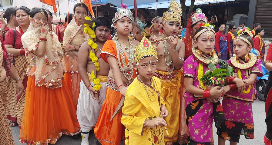 श्रीकृष्णले गोपिनी र राधासँग गरेको प्रेम प्रसङ्गका कारण यो महिनाभर प्रेम उत्सव अर्थात् झुला उत्सवका रुपमा समेत मनाउने गरिन्छ । आजको दिन पाटनको मङ्गलबजारस्थित प्रसिद्ध श्रीकृष्ण मन्दिर, काठमाडौँको पूर्वी भेगस्थित गोठाटारमा रहेको नवतनधाम, उत्तरी भेग बूढानीलकण्ठस्थित श्रीकृष्ण भावनामृत सङ्घको मन्दिरमा र देशभरका अन्य कृष्ण मन्दिरमा भव्यरुपमा पूजा, आराधना एवम् रथयात्रा र शोभायात्रा गरी श्रीकृष्ण जन्माष्टमी पर्व मनाउने गरिन्छ ।