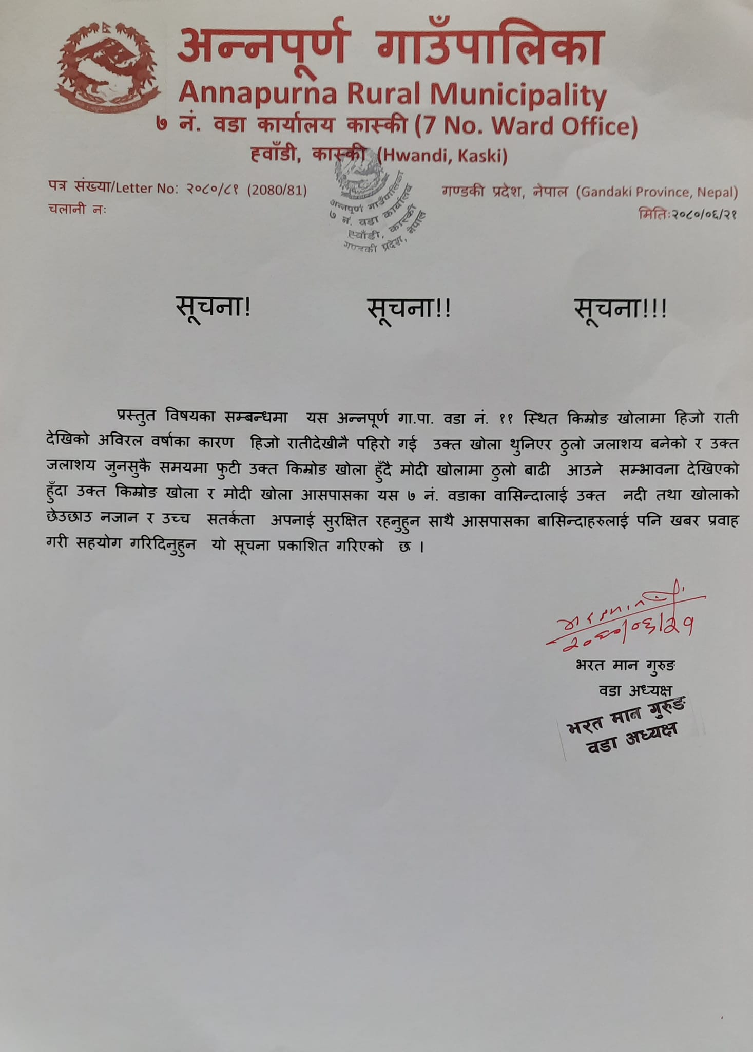 गण्डकी प्रदेशको अग्रणी अनलाइन गण्डक न्यूज विभिन्न प्लाटफर्ममा उपलब्ध छन्। सामाजिक सञ्जालहरूमा हाम्रो च्यानल सब्स्क्राइब गर्न यहाँ क्लिक गर्नुहोस्। जहाँ तपाईँ फेसबुक, ट्विटर, इन्स्टाग्राम, यूट्युब लगायतमा पनि हाम्रा सामाग्री हेर्न सक्नुहुन्छ। नयाँ खबर थाहा पाउनका लागि गण्डक न्यूज र हाम्रो अर्को आधिकारिक वेबसाइट गण्डकी न्यूज भिजिट गर्दै गर्नुहोला। साथै, माथि समाचार पढेपछि तपाईँको प्रतिक्रिया के छ? व्यक्त गर्नुहोला।