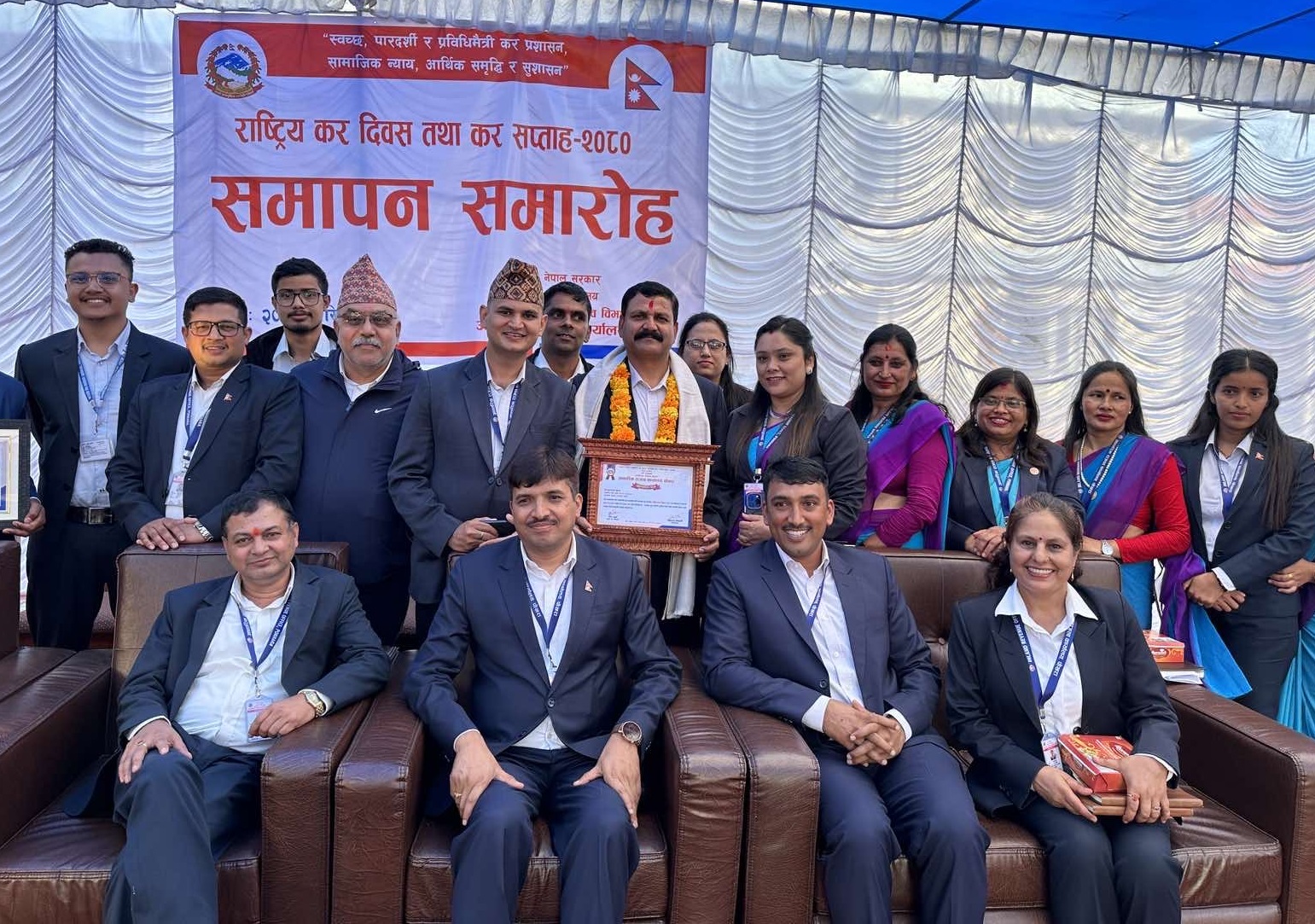 पोखराबाट सबैभन्दा धेरै आयकर तिर्ने जाल्पा सामुदायिक लघुवित्त, माछापुच्छ्रे मेटल र कर्माचार्य वेक्स एण्ड फुड्सलाई सम्मान गरिएको छ ।