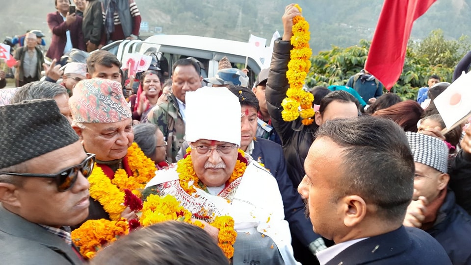 एमाले अध्यक्ष ओलीसहितको सङ्कल्प यात्राको टोलीलाई आज साँझ कास्की र पर्वतको सीमास्थल नयाँपुलमा बाजागाजासहित भव्य स्वागत गरिएको थियो ।