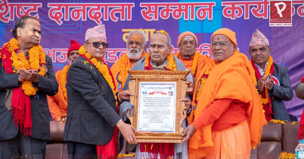 उनलाई सम्मान गर्दै गलेश्वरधाम देवघाटका पीठाधीश आत्मानन्द गिरीले नेपालमा परापूर्वकालदेखि नै वैदिक सनातन धर्म मानिँदैआएको तर पछि आएर हिन्दु धर्म भन्ने गरिएको बताए ।