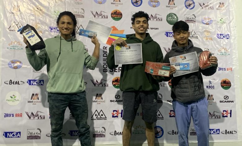 पोखरा लेकसाइडमा सम्पन्न ओपन वाल बोल्डरिङ प्रतियोगिताको उपाधि पुरुषतर्फ रोनक उप्रेती र महिलातर्फ स्वस्तिका चौधरीले जितेका छन् ।