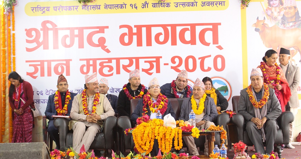 पोखरा । पोखरा महानगरपालिकाको सहयोग तथा राष्ट्रिय परोपकार महासङ्घ नेपालको व्यवस्थापनमा सञ्चालित पुष्करिणी परोपकार गोकुल धाममा बुधवारदेखि श्रीमद् भागवत ज्ञान महायज्ञ सुरु भएको छ । महासङ्घको १६ औँ वार्षिकोत्सवको अवसरमा आयोजित सप्ताह व्यापी ज्ञान महायज्ञको पोखरा महानगरपालिकाका प्रमुख धनराज आचार्यले उद्घाटन गरेका हुन् ।