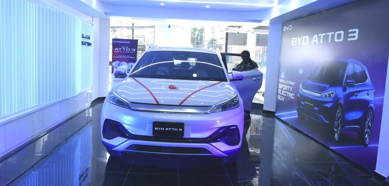 काठमाडौँ । विद्युतीय सवारीसाधनमा विश्वकै अग्रणी बीवाईडीको नेपालमा नयाँ शोरुम ललितपुरको पुल्चोक, हरिहरभवनमा खुलेको छ । इको ड्राइभ अटोमोबाइल्स कम्पनीले बिक्री गर्ने गरी शोरुम सञ्चालनमा आएको हो ।