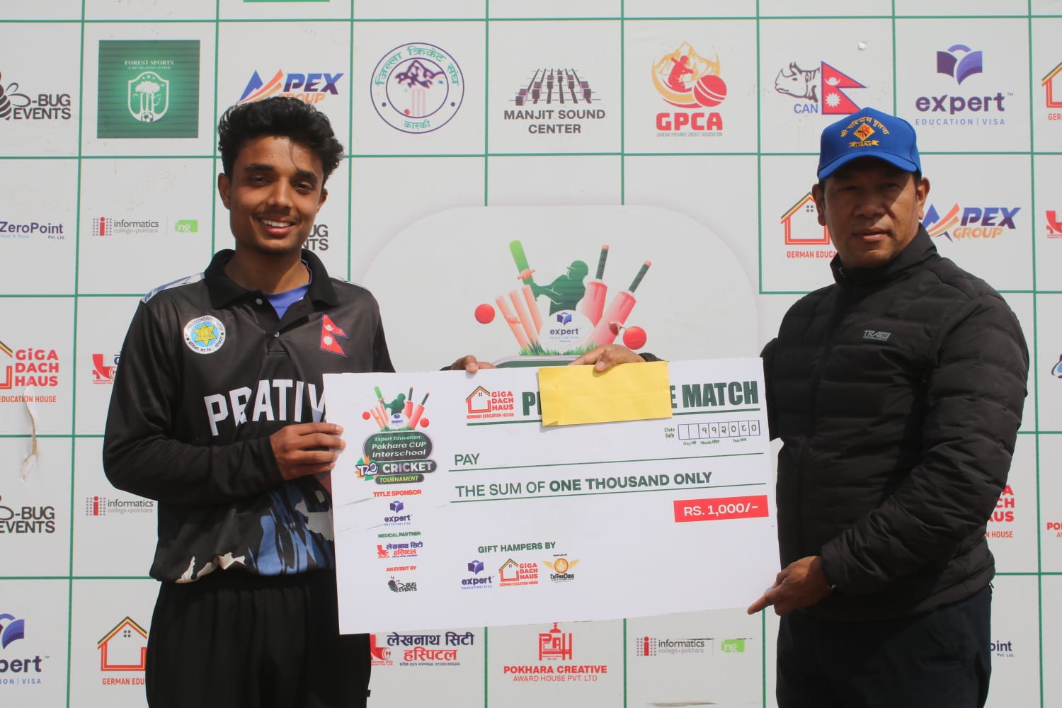 प्रतिभाका लागि निश्चल श्रेष्ठले सर्वाधिक २० रन बनाए । बब्लु शाह र रोशन पौडेलले १३/१३, राहुल शर्माले ३ रनको योगदान दिँदा रोहन चन्द ६ रनमा अविजित रहे ।