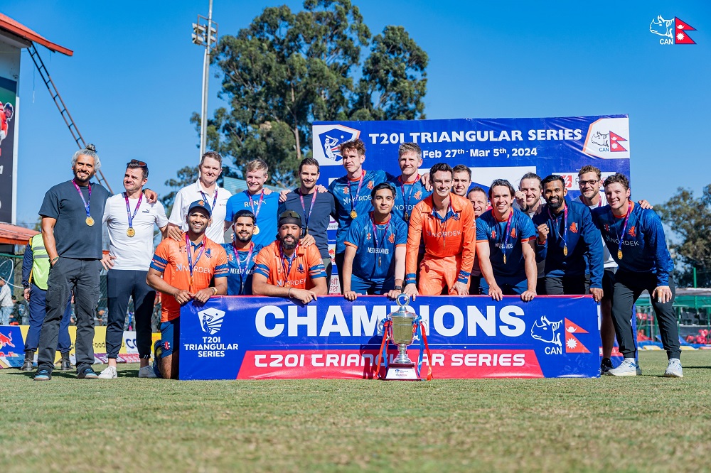 टस जितेर पहिले ब्याटिङ रोजेको नेपालले निर्धारित २० ओभरमा आठ विकेट गुमाएर नेपालले एक सय ८४ रन बनाएको थियो। जवाफी ब्याटिङमा उत्रिएको नेदरल्यान्ड्सले १९.३ ओभरमा ६ विकेट गुमाएर लक्ष्य पुरा गर्यो।