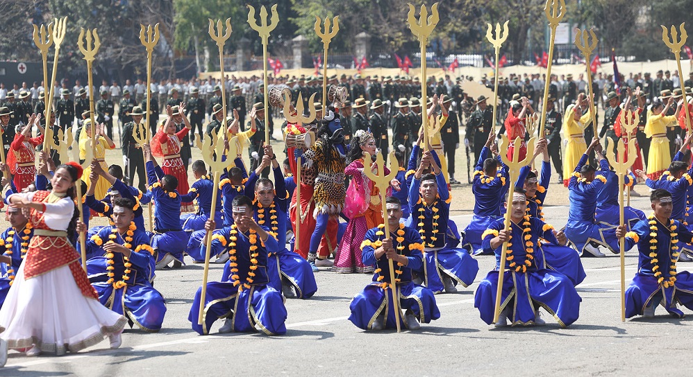 समारोहमा नेपाली सेनाको हेलिकोप्टरद्वारा नेपालको राष्ट्रिय झन्डालगायत महाशिवरात्रि तथा सेना दिवसको ब्यानर प्रदर्शनसहित पुष्पवृष्टि गरिएको थियो। कार्यक्रममा राइफल र तोपबाट बढाइँ गरिनुका साथै विविध सैनिक कला र सांस्कृतिक एवं सांगीतिक प्रस्तुति गरिएको थियो।