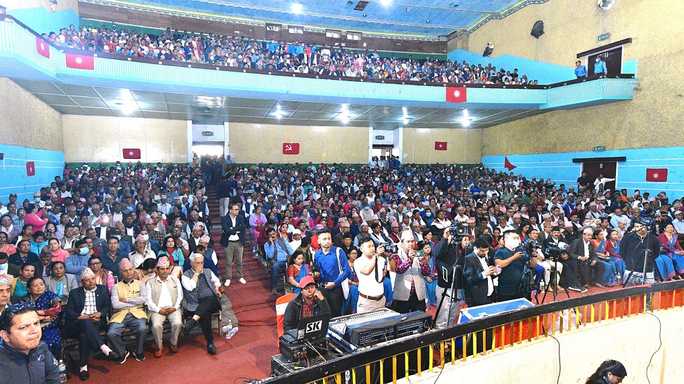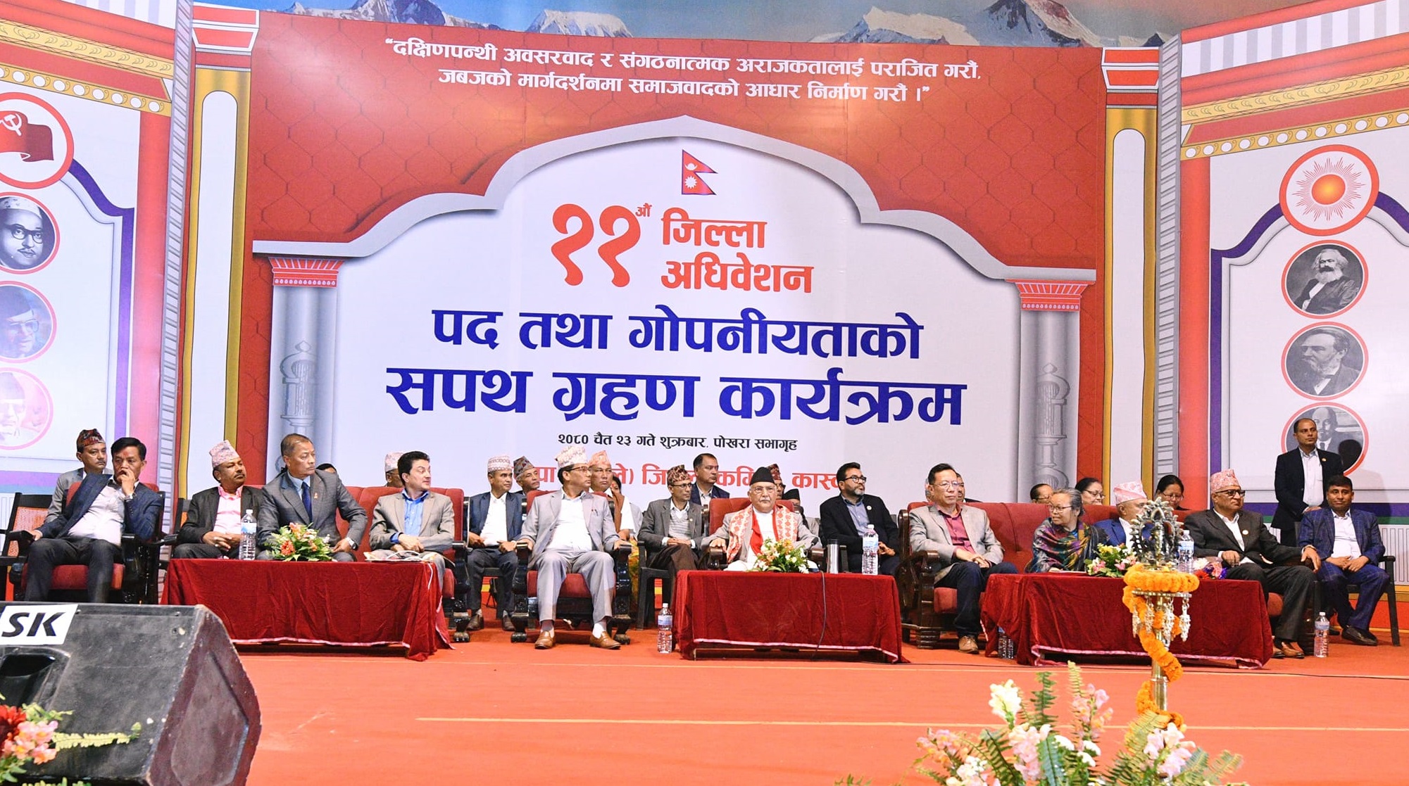 उनले देशलाई राम्रो बाटोमा लैजाने अभिभारामा आफूहरु सफलतापूर्वक अघि बढेको जिकिर गरे। उनले केही समयअघि एमाले बिनाको नेपाल र ओली बिनाको एमालेको कल्पना गरेको भन्दै उनीहरुप्रति दया लागेर आउने बताए। उनले एमाले र देशलाई ठिक बाटोमा अघि बढाउन अझै २० वर्ष आफूले सक्रिय भएर काम गर्ने बताए। उनले देशबाट गरिबी, भोकमरी हटाएपछि मात्रै नेकपा एमालेले सुस्केरा हाल्न सक्ने बताए।