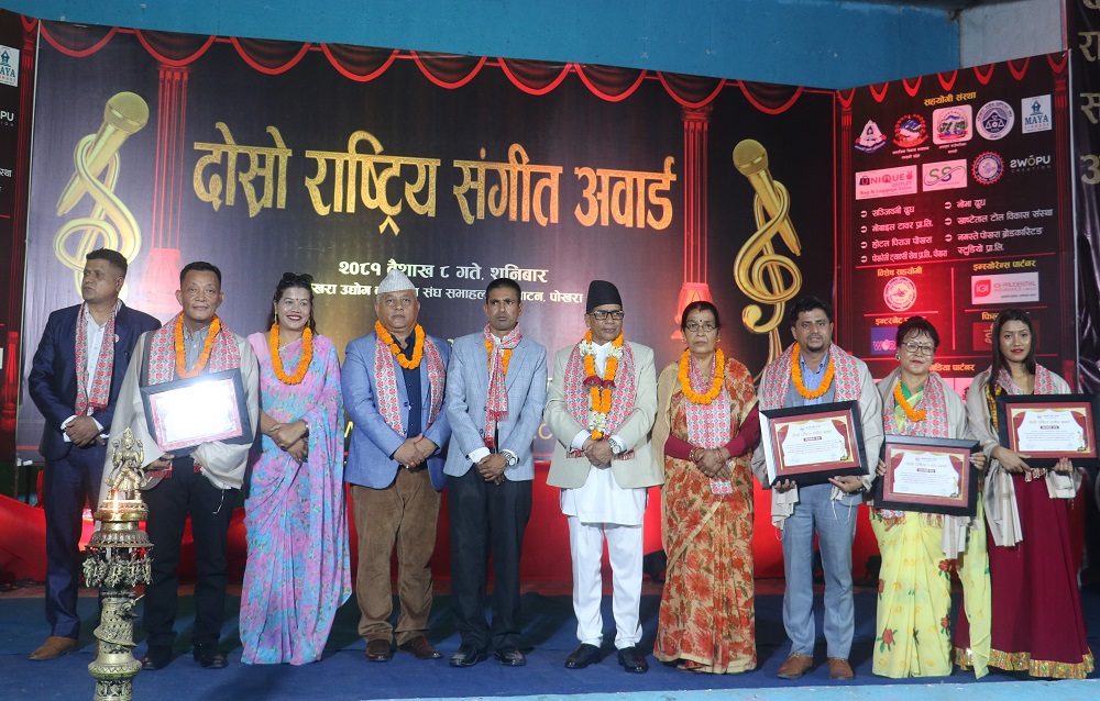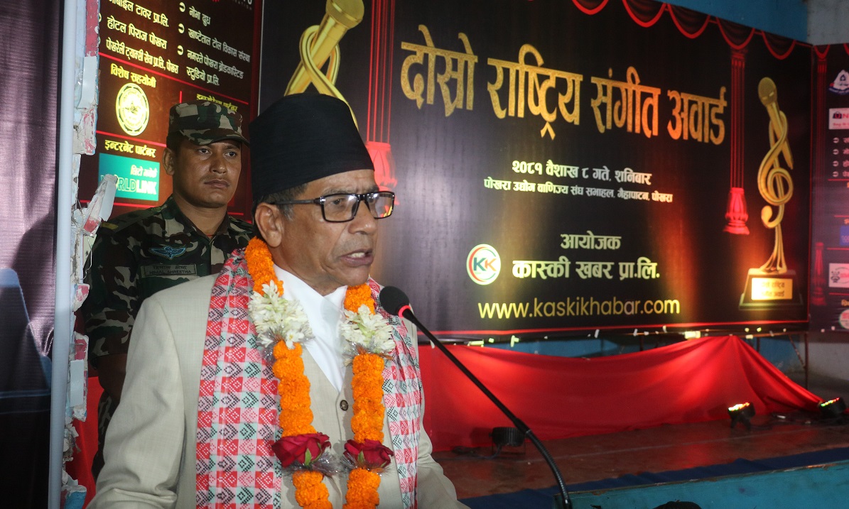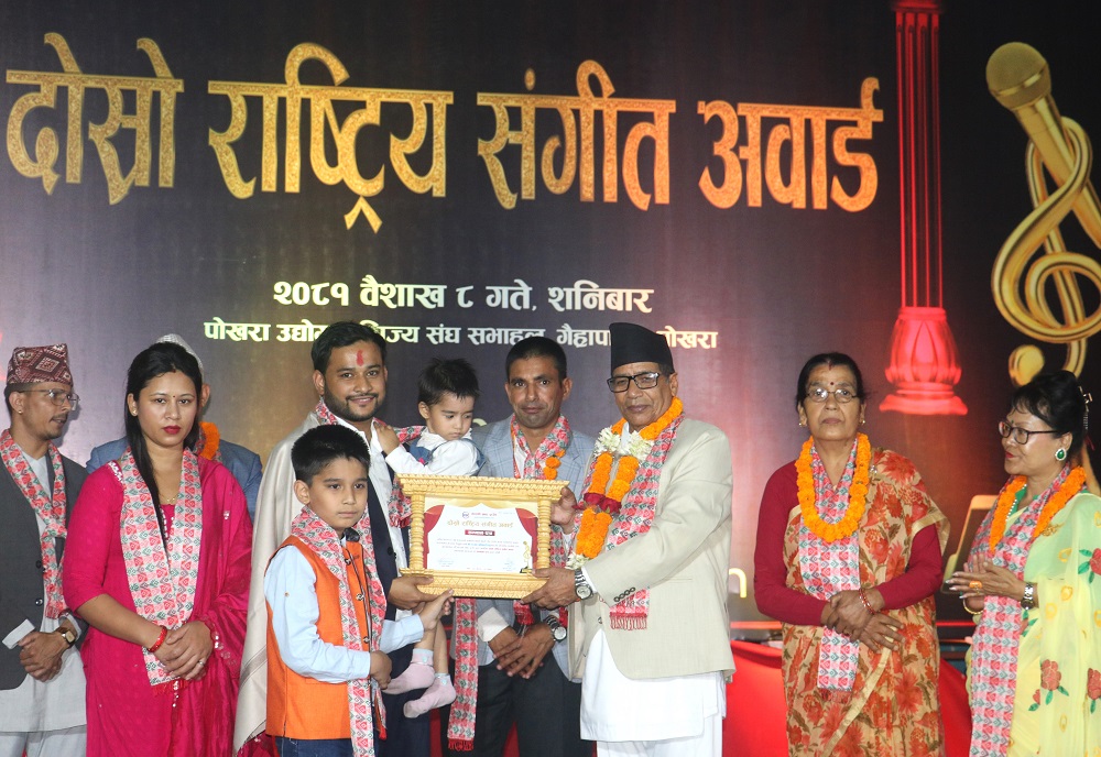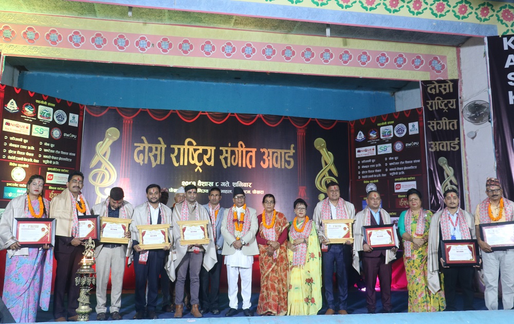 ‘अग्रजलाई सम्मान, नयाँ पुस्तालाई प्रोत्साहन’ नाराका साथ आयोजित दोश्रो राष्ट्रिय संगीत अवार्डमा विभिन्न २६ विधामा सर्वोत्कृष्टलाई अवार्ड वितरण गरिएको आयोजक संस्था कास्की खबरका अध्यक्ष ऋषिराम दाहालले जानकारी दिए ।