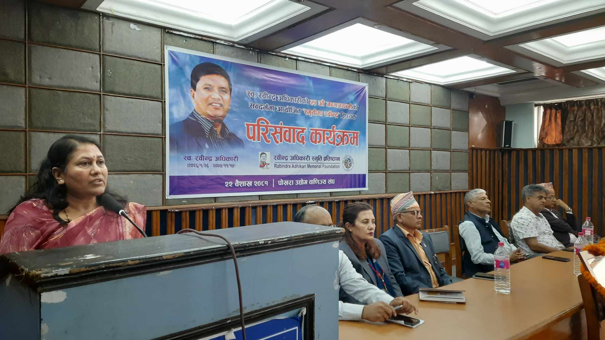 रवीन्द्र अधिकारी स्मृति प्रतिष्ठानका अध्यक्ष विद्या भट्टराई अधिकारीको अध्यक्षतामा भएको कार्यक्रममा स्वागत अर्जुन अधिकारी र सञ्चालन रश्मि आचार्यले गरेका थिए।