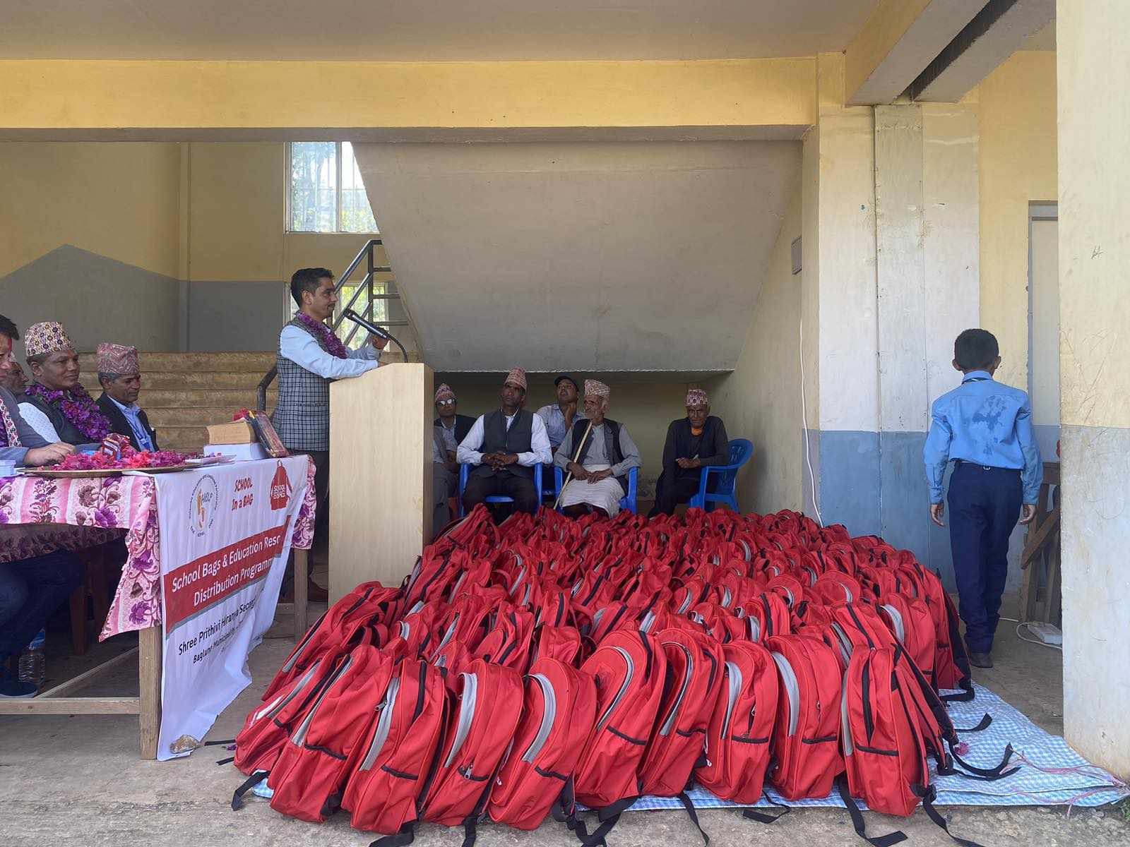 बागलुङको दुई विद्यालयका विद्यार्थीलाई झोलासहितको शैक्षिक सामाग्री प्रदान गरिएको छ ।