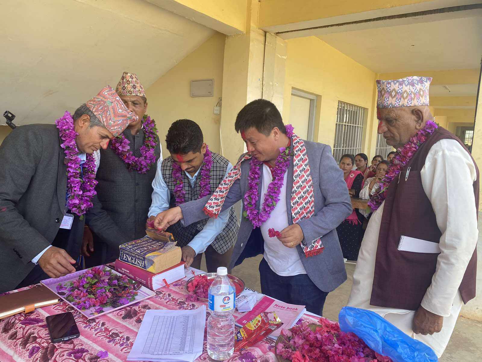 बागलुङ नगरपालिका वडा नं. १२ अमलाचौर र वडा नं. १४ नारायणस्थानमा रहेका विद्यायलहरुमा विद्यालय झोला र शैक्षिक सामाग्री वितरण गरिएको हो ।