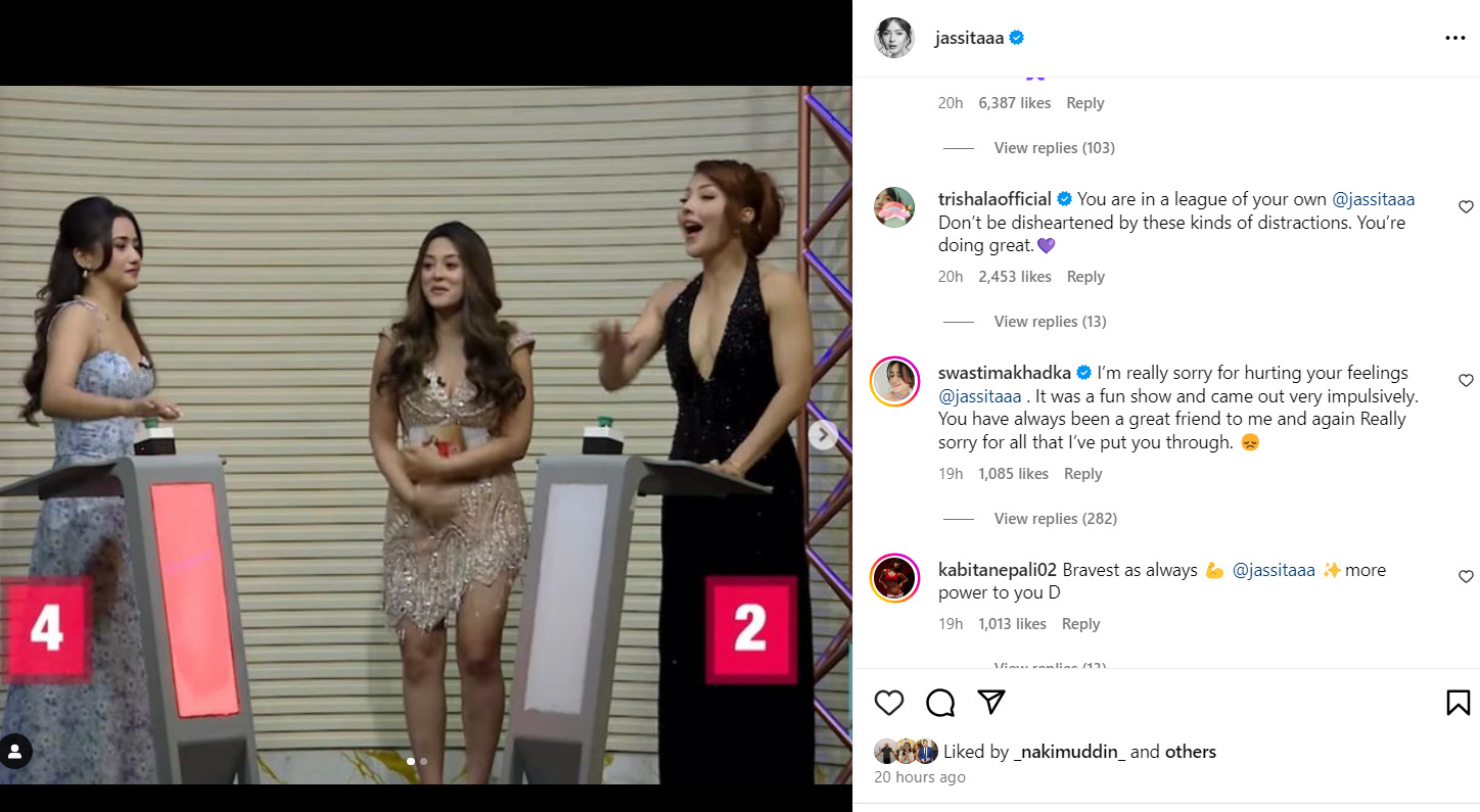 स्वस्तिमाले जसिता गुरुङको पोस्टको कमेन्टमा माफी मागेकी हुन् भने साम्राज्ञीले स्टोरीबाट।