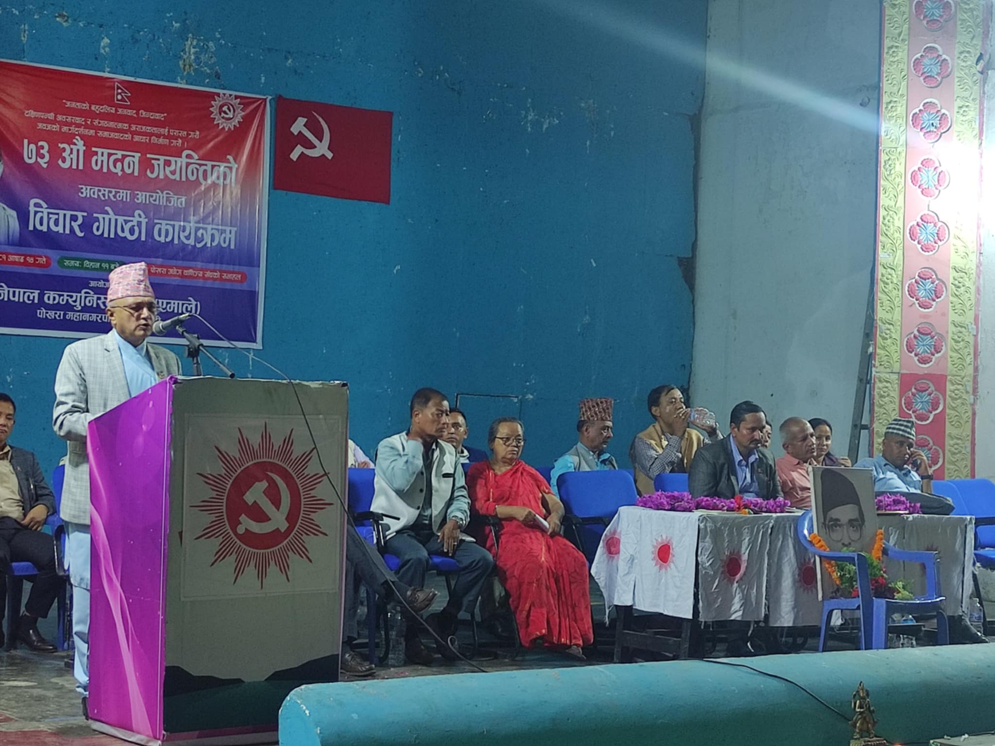 शुक्रबार एमाले पोखरा महानगरपालिका कमिटीले ७३ औं मदन जयन्तिको अवसरमा आयोजना गरेको विचार गोष्ठी कार्यक्रममा बोल्दै उनले अबको निर्वाचन मार्फत एमालेले एकल बहुमतका साथ आफ्नो खुट्टामा उभिनसक्ने हुनुपर्ने बताए ।