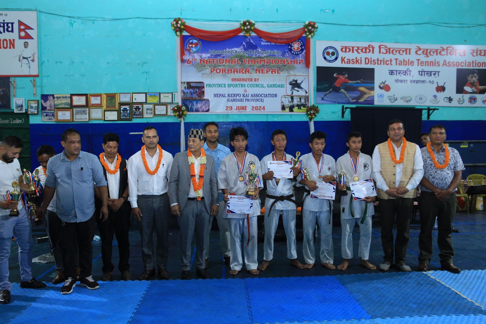 प्रमुख अतिथि गण्डकी प्रदेश सरकारका सामाजिक विकास तथा स्वास्थ्य मन्त्री बिन्दु कुमार थापा, आयोजक प्रदेश खेलकुद परिषदका सदस्य सचिव श्रीधर शर्मा, व्यवस्थापक गण्डकी प्रदेश केन्पोकाई संघका अध्यक्ष प्रगात कायस्थ र साउथ एशियन केन्पोकाई ब्राञ्च चिफ नाराज बहादुर खड्का (हरि)ले विजयी खेलाडीहरुलाई ट्रफी, मेडल तथा प्रमाणपत्र वितरण गरेका थिए ।