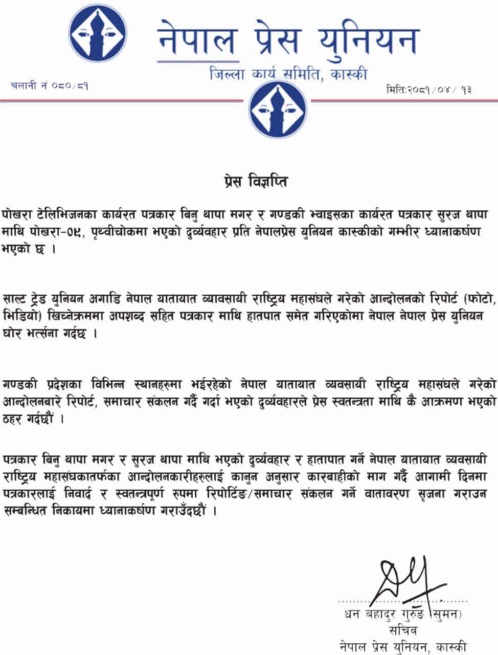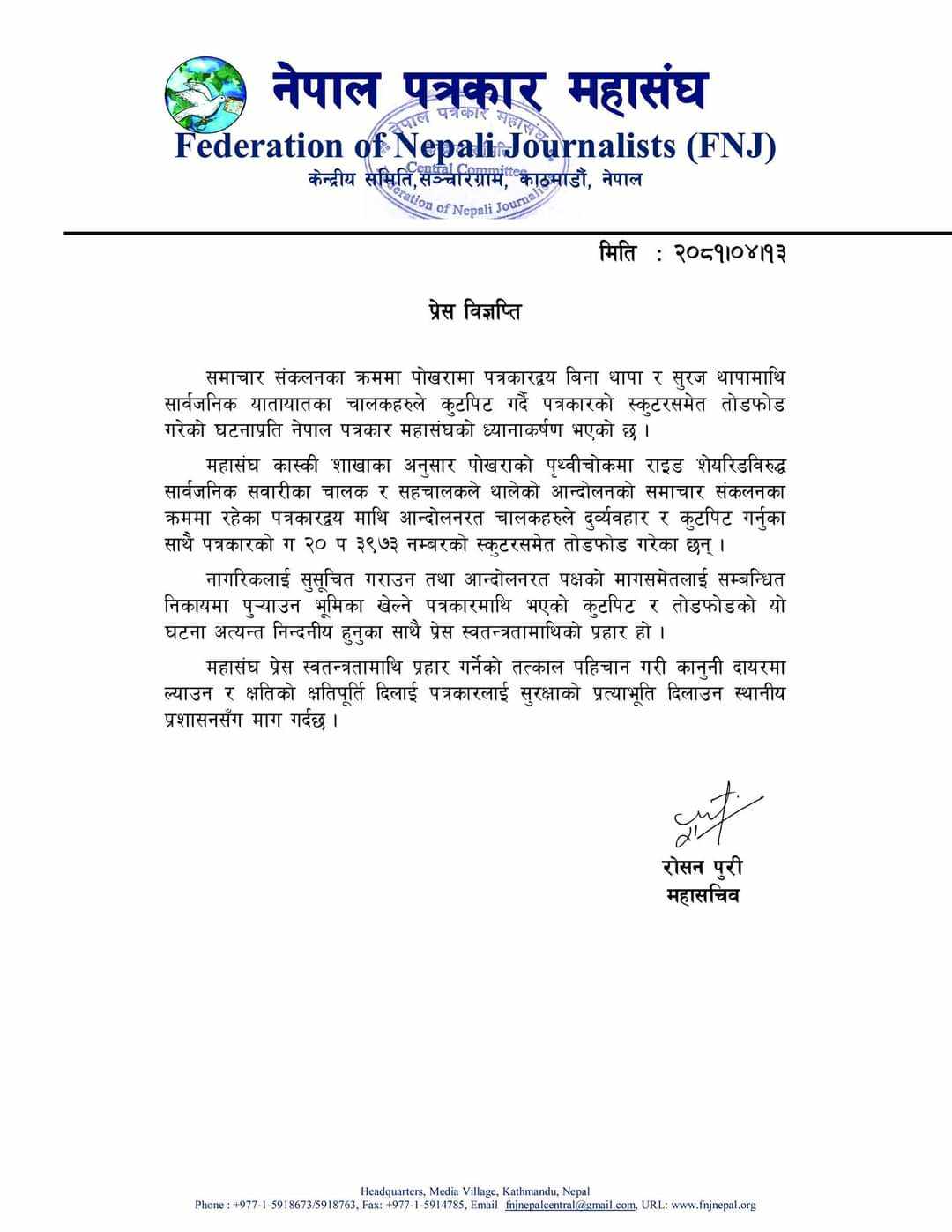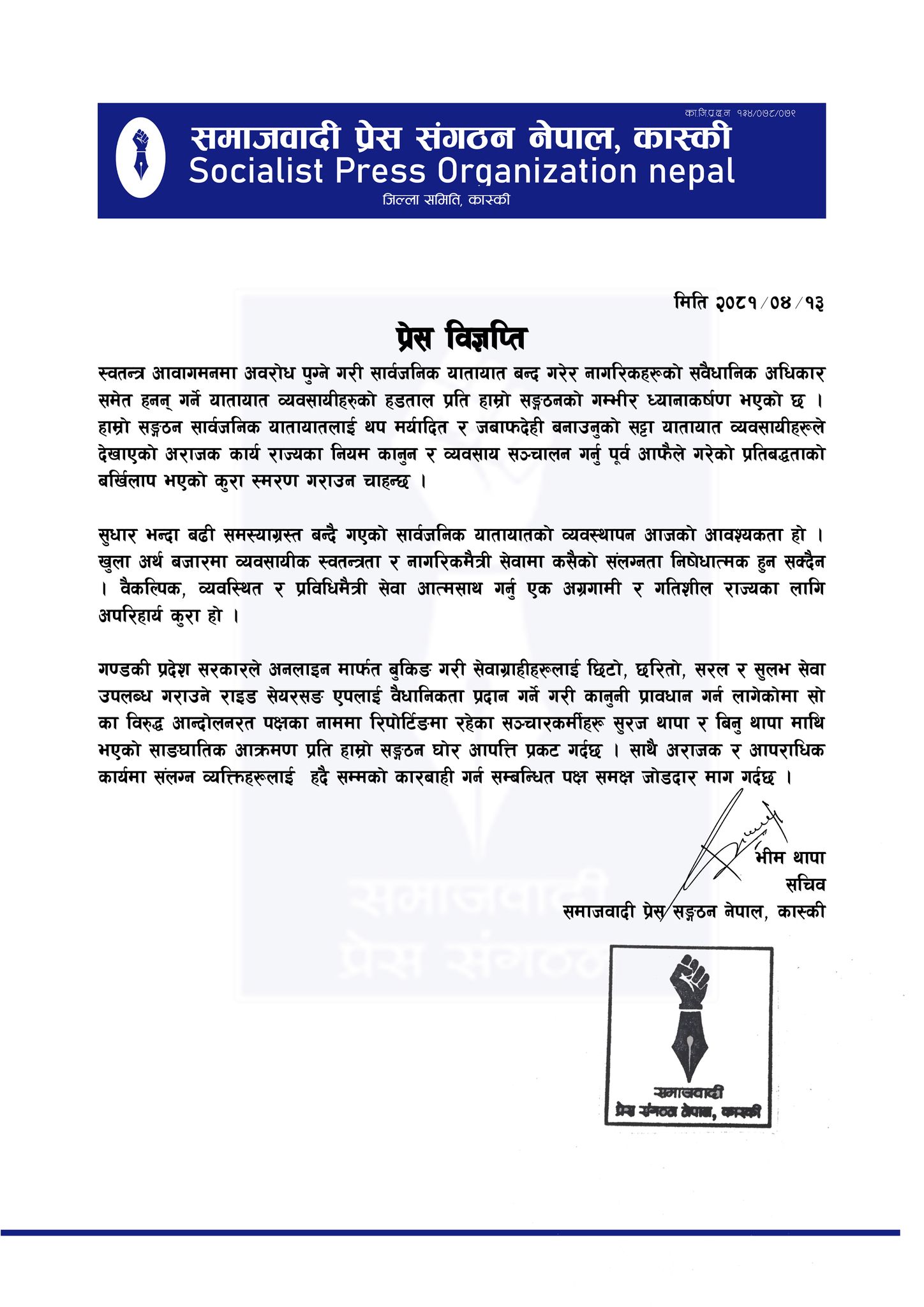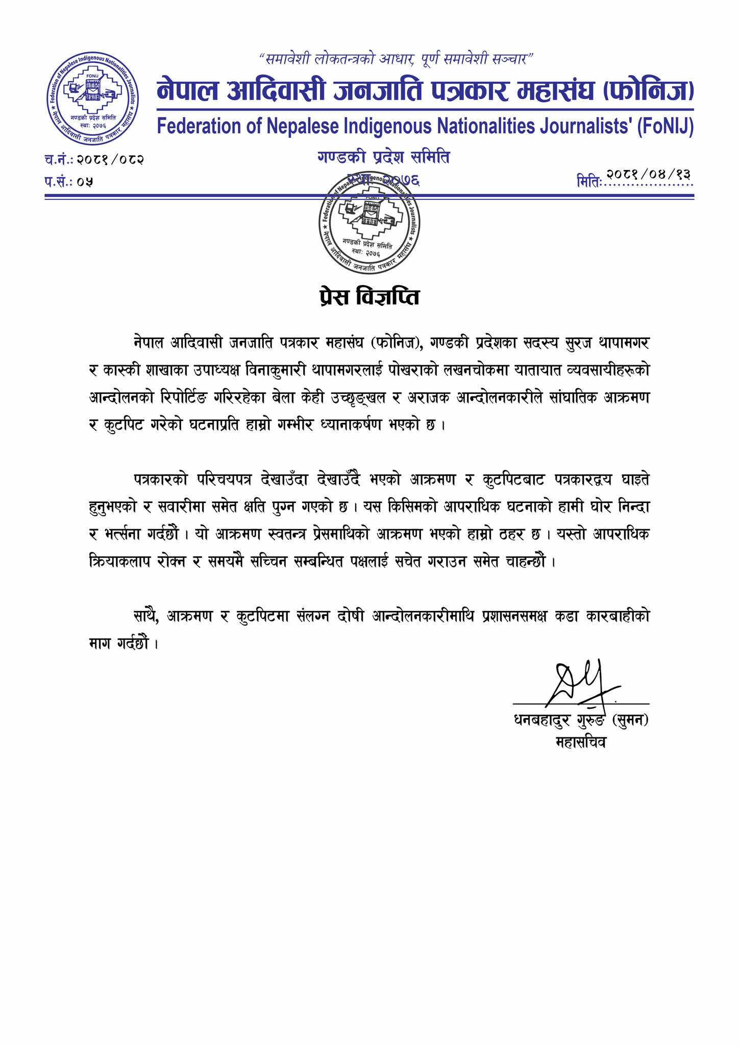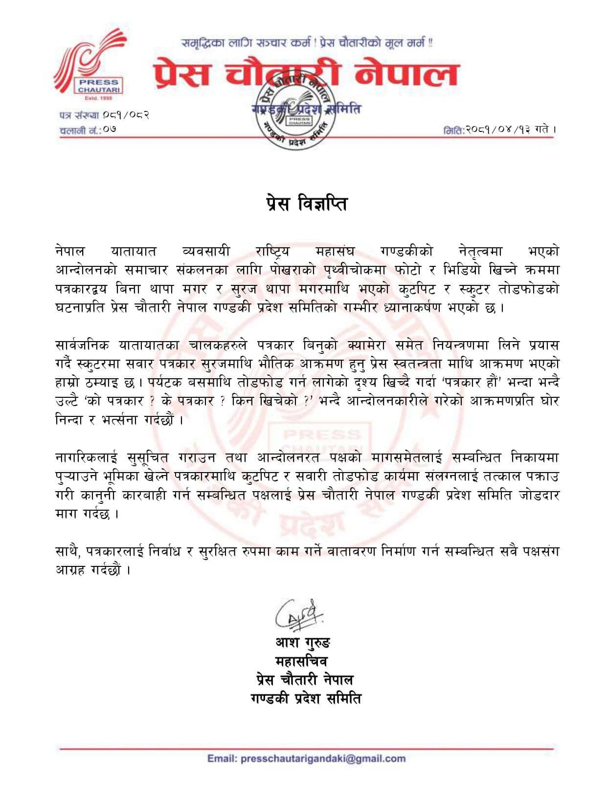 गण्डकी प्रदेशको अग्रणी अनलाइन गण्डक न्यूज विभिन्न प्लाटफर्ममा उपलब्ध छन्। सामाजिक सञ्जालहरूमा हाम्रो च्यानल सब्स्क्राइब गर्न यहाँ क्लिक गर्नुहोस्। जहाँ तपाईँ फेसबुक, ट्विटर, इन्स्टाग्राम, यूट्युब लगायतमा पनि हाम्रा सामाग्री हेर्न सक्नुहुन्छ। नयाँ खबर थाहा पाउनका लागि गण्डक न्यूज र हाम्रो अर्को आधिकारिक वेबसाइट गण्डकी न्यूज भिजिट गर्दै गर्नुहोला। साथै, माथि समाचार पढेपछि तपाईँको प्रतिक्रिया के छ? व्यक्त गर्नुहोला।