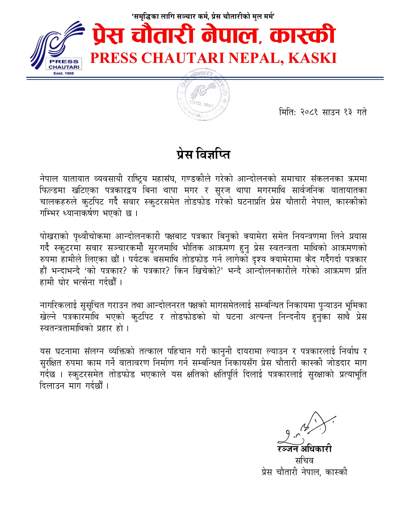 पोखराका मेयरको घरमा आगजनी र लुटपाट गर्ने रास्वपाका वडा सभापतिसहित ४ जना कारागार चलान