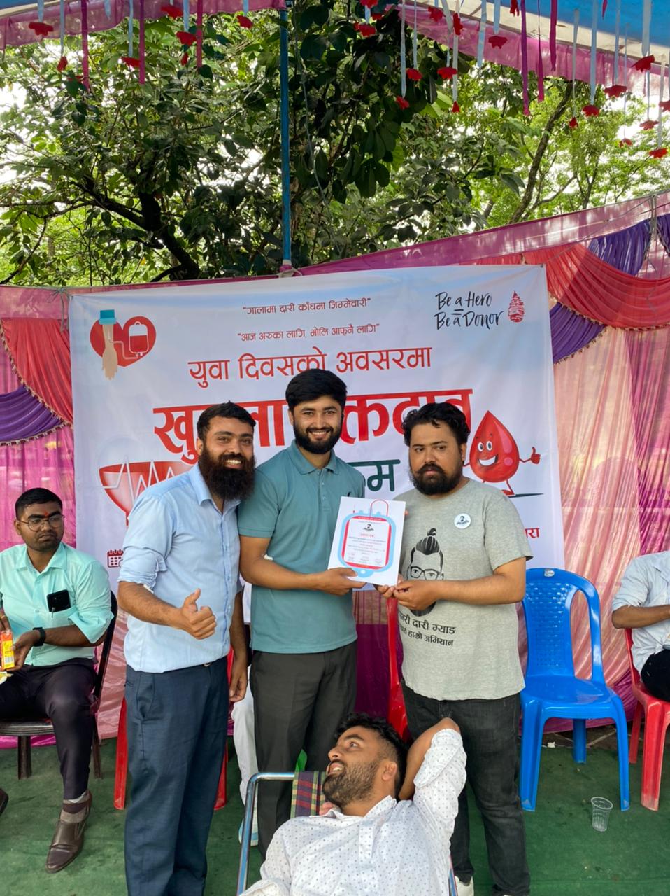 ‘आज अरुका लागि, भोलि आफ्नै लागि’ भन्ने नाराका साथ दाह्री ग्याङ, नेपाल रेडक्रस सोसाइटी, श्रेत्रीय रक्तसञ्चार सेवा केन्द्र कास्कीको सहयोगमा पोखराले यस वर्ष पनि सोमबार रक्तदान कार्यक्रम आयोजना गरेको हो ।