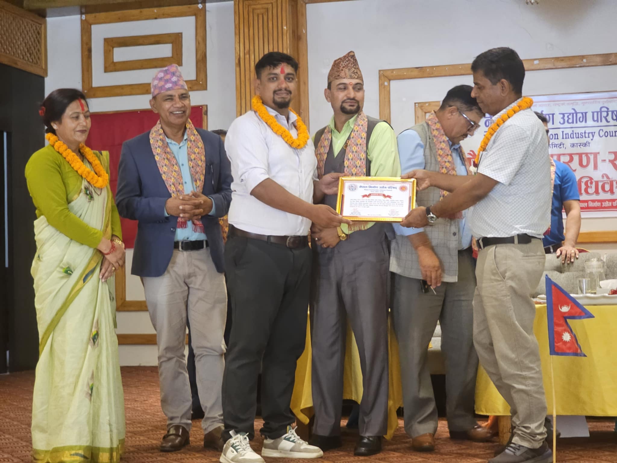 नेपाल निर्माण व्यवसायी संघ कास्कीको सदस्यमा विजयी स्वीकार पोखरेललाई सम्मान पत्र प्रदान गर्दै नेपाल निर्माण उद्योग परिषद्का केन्द्रीय वरिष्ठ उपाध्यक्ष चिरञ्जीवी पोखरेल