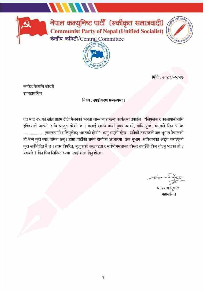 केपी ओलीको भाषण हटाउन मिडियालाई पत्र काटेकोमा आपत्ति