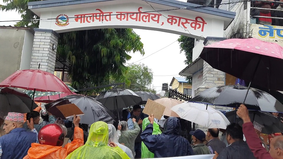 मालपोत कार्यालयमै पुगेर उनीहरुले मालपोत कार्यालयका प्रमुख रामचन्द्र अधिकारीलाई विरोध पत्र बुझाउनुका साथै नाराबाजीसहित विरोध प्रदर्शनसमेत गरेका छन् ।