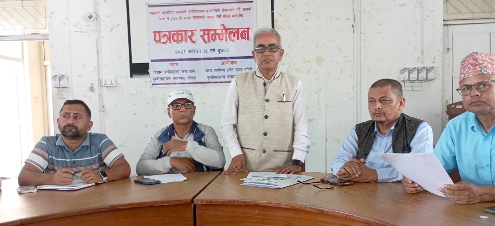 त्रिभुवन विश्वविद्यालय प्राध्यापक संघ पृथ्वीनारायण क्याम्पस इकाइ सभापतिसमेत रहेको अधिकारीले क्याम्पसको बैठकले लामो समयदेखि भोगचलन गर्दै आएको जग्गा क्याम्पसको स्वामित्वमा ल्याउन कानुनी राजनीतिक र प्रशासनिक प्रक्रिया अगाडि बढाउने निर्णय गरेको उल्लेख गरे ।