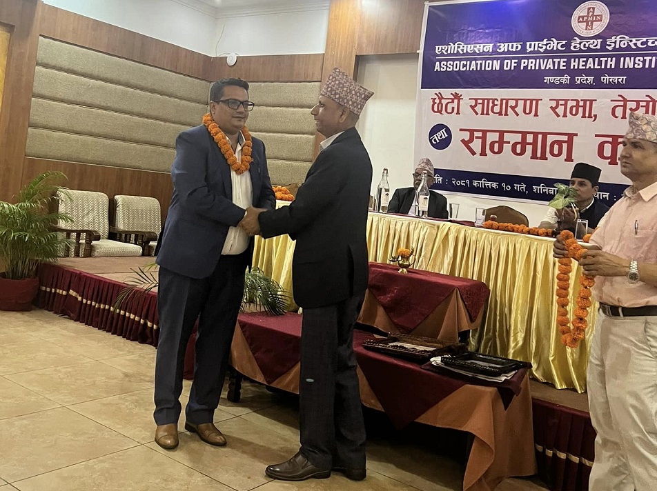उनीहरुलाई गण्डकी प्रदेशका स्वास्थ्य मन्त्री पाठक, पोखरा महानगरपालिका मेयर धनराज आचार्य र संस्थाका अध्यक्ष डाक्टर गिरधारी शर्माले संयुक्त रुपमा सम्मान गरेका हुन् ।