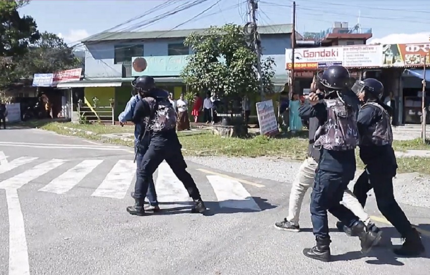 पोखराको जिरोकिलोमिटरबाट रत्नचोक हुँदै वाइ चोकमा पुगेर निषेधित क्षेत्र तोड्न खोज्दा प्रहरी रक्षात्मक अवस्थामा पुगेको हो । त्यहि बेलामा ४ सेल अश्रुग्याँस प्रहार गरिएको हो । विरोधमा उत्रिएका ११ जनालाई प्रहरीले पक्राउ गरेको छ ।