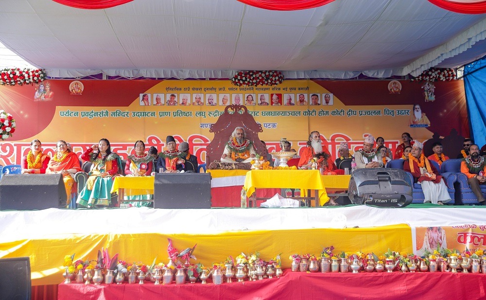 पोखरा । पोखरा महानगरपालिका वडानम्बर १५ ढुङगेसाँघु, पट्नेरीमा गण्डकी प्रदेशकै पहिलो ऐतिहासिक शुक्लागण्डकी कोटिहोम–२०८१ सुरु भएको छ । कोटिहोमको शोमबार गण्डकी प्रदेशका प्रदेश प्रमुख डिल्लीराज भट्टले उद्घाटन गरे ।