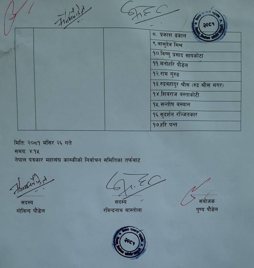 पत्रकार महासंघ कास्कीका पूर्व अध्यक्ष अग्रज पत्रकार पुण्य पौडेलको संयोजकत्वमा निर्वाचन समिति गठन भएको छ ।