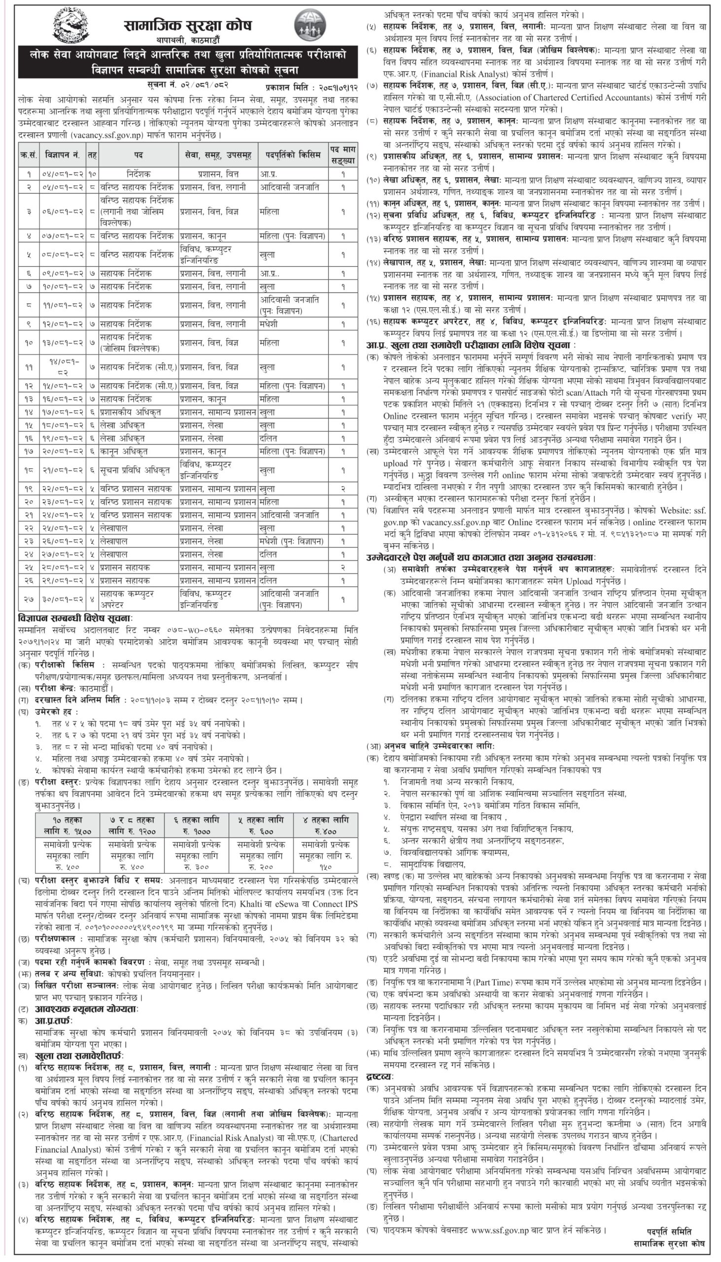 सामाजिक सुरक्षा कोषले निर्देशकदेखि कम्युटर अपरेटसम्म २९ कर्मचारी माग्यो