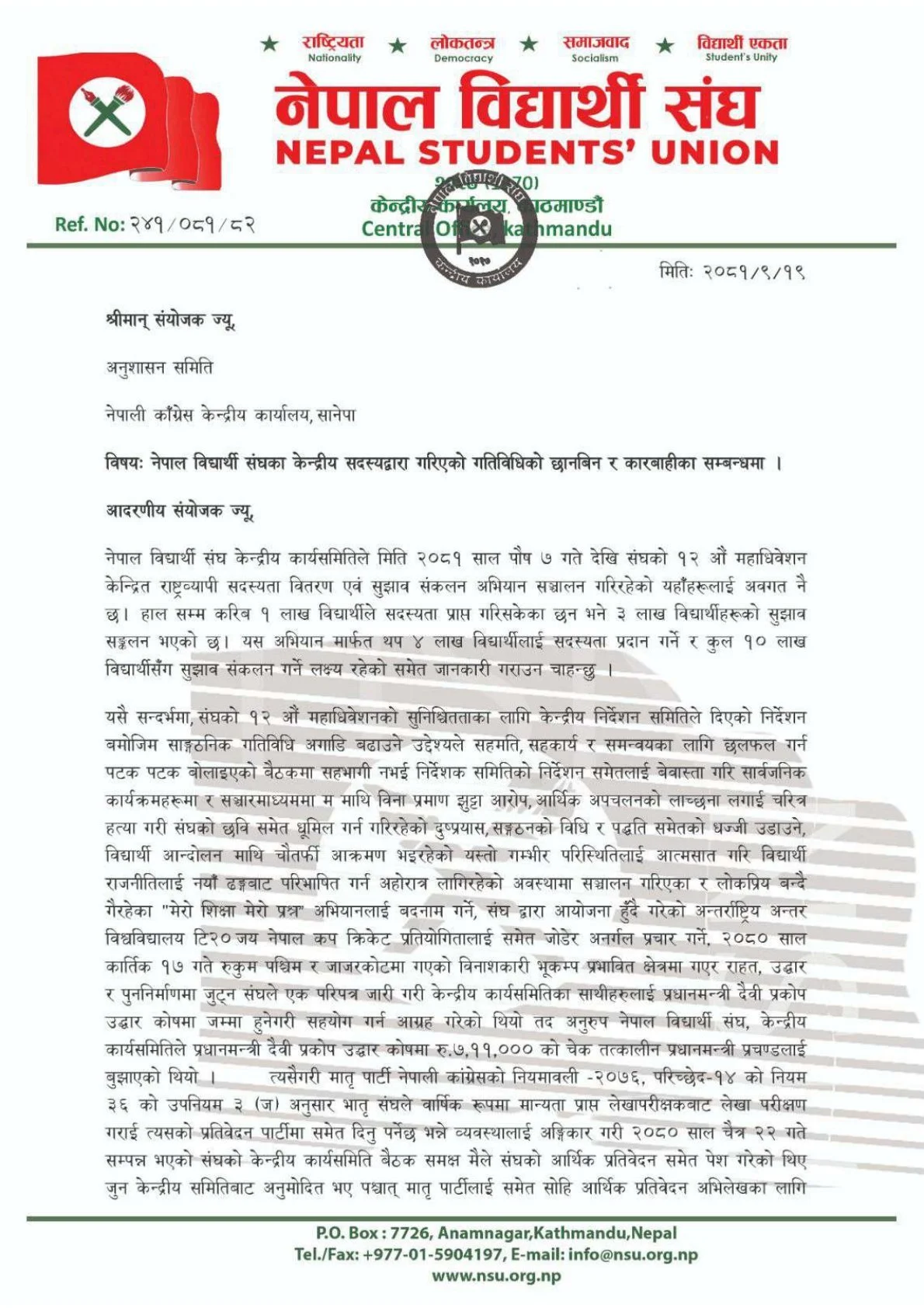 सङ्गठनको विधि र पद्धति समेतको धज्जी उडाउने, विद्यार्थी आन्दोलनमाथि चौतर्फी आक्रमण भइरहेको उनको आरोप छ।