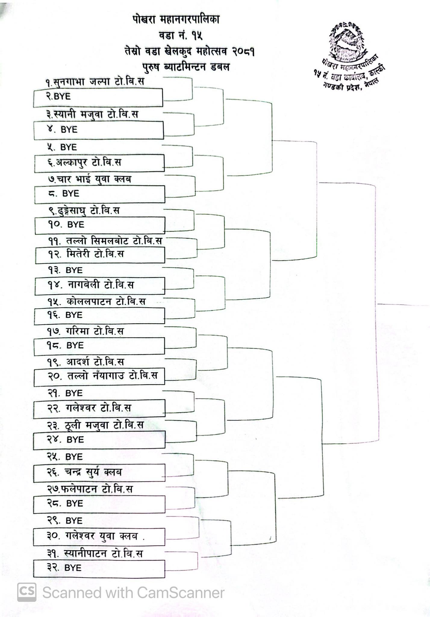 पोखरा वडा नं. १५ कार्यालयले यही माघ २ गते, बुधबारदेखि आयोजना गर्ने बृहत खेलकुद महोत्सवको तयारी अन्तिम चरणमा पुगेको छ ।