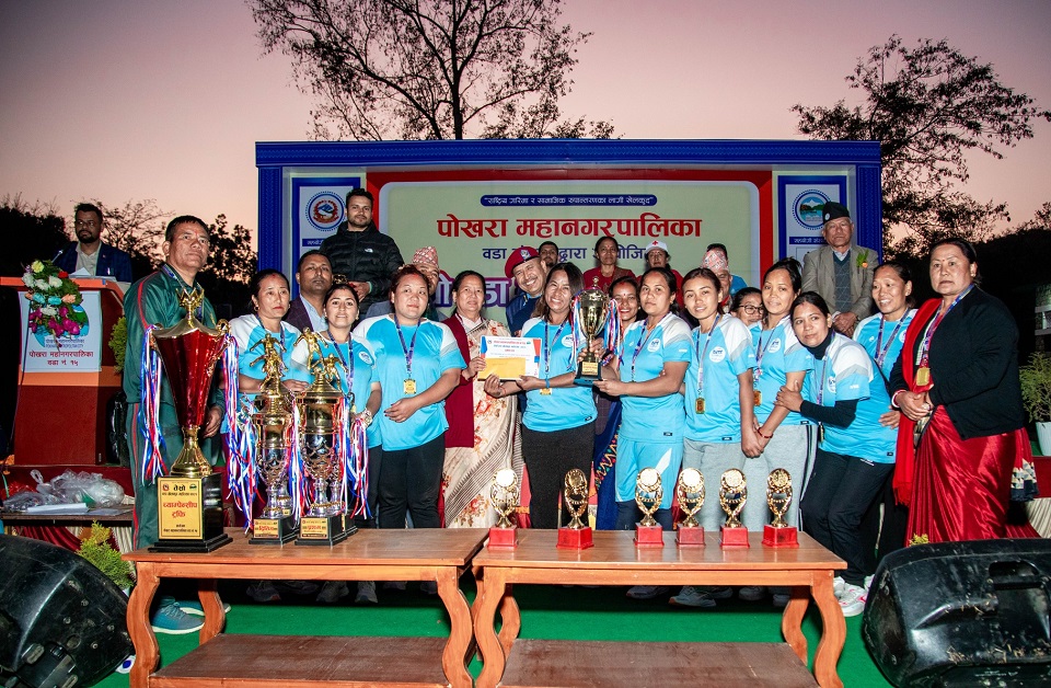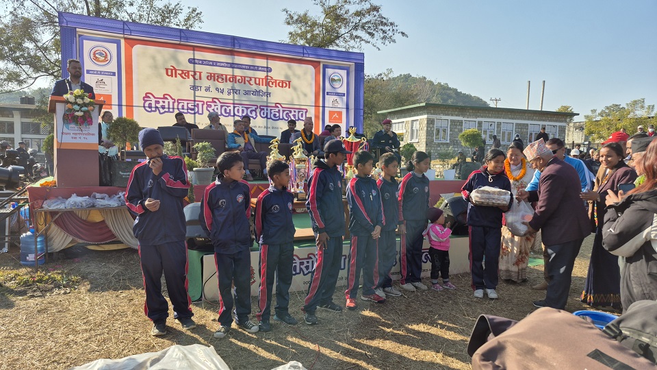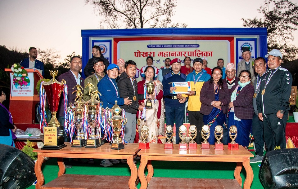 वडा कार्यालयले आयोजना गरेको चार दिने बृहत् खेलकुद महोत्सवमा दर्जनौं खेलका विजेताहरूलाई पोखरा महानगरपालिकाकी उपप्रमुख मञ्जुदेवी गुरूङ, पूर्व मेयर तथा नेकपा एमालेका केन्द्रीय सदस्य एवं कास्की ईञ्चार्ज कृष्ण थापा, गण्डकी प्रदेश प्रहरी तालिम केन्द्रका प्रहरी उपरीक्षक कृष्णबहादुर कार्की, वडा अध्यक्ष तोरणबहादुर बानियाँ, महोत्सव संयोजक आशिष भण्डारीलगायतले पुरस्कार, ट्रफी, शिल्ड, प्रमाणपत्र प्रदान गरे ।