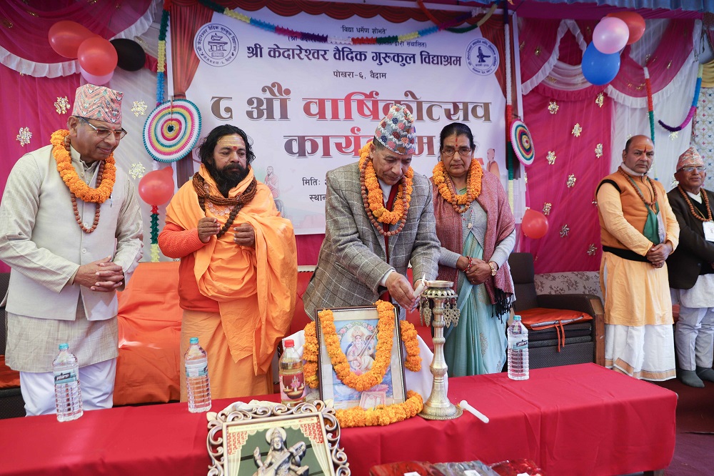 श्री केदारेश्वर वैदिक गुरुकुल विद्याश्रम, पोखराको आठौं वार्षिकोत्सवमा प्रमुख अतिथि भट्टले मानवीय धर्म र चेतनालाई उजागर गर्ने स्रोत नै गुरुकुल भएकाले यिनको संरक्षण र संवद्र्धन गर्नु हामी सबैको दायित्व भएको उल्लेख गरे ।
