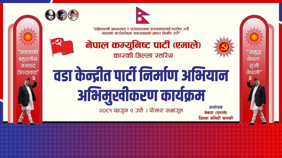 पोखरा । संगठन विस्तारको उद्देश्यसहित नेकपा (एमाले)ले थालेको वडा केन्द्रीत पार्टी निर्माण अभियान २०८१ कास्कीमा शुक्रबारदेखि सुरू हुँदैछ । टोलसम्म पार्टी कमिटी विस्तार गर्ने, सदस्यता नवीकरण तथा वितरण गरेर संगठन विस्तार गर्ने पार्टी केन्द्रीय कमिटीको उद्देश्यअनुसार कास्कीमा शुक्रबारदेखि तीन महिना लामो अभियान सुरू गर्न लागिएको हो ।