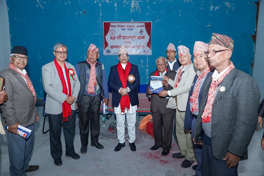 निवृत्त शिक्षक समुदाय, कास्कीको २३ औं वार्षिक साधारणसभालाई सम्बोधन गर्दै प्रमुख अतिथि भट्टले शिक्षण पेशालाई अझ बढि सामाजिक हैसियत प्रदान गर्न आवश्यक रहेकोमा जोड दिए ।