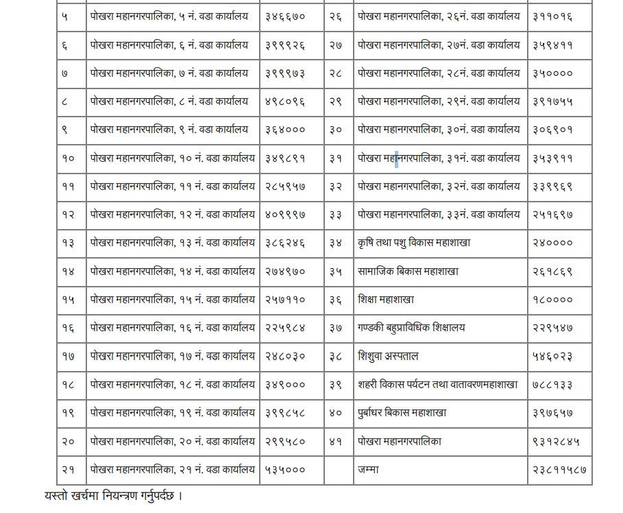 पोखरा महानगरपालिकाको एक वर्षको खाजा खाना खर्च २ करोड