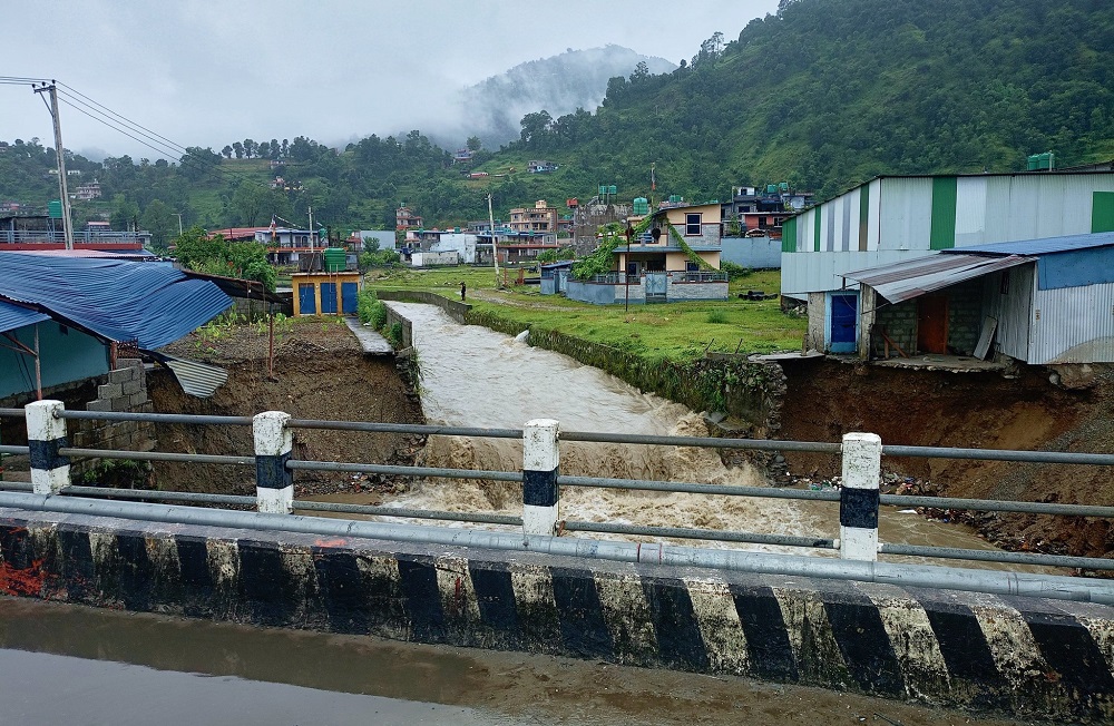 पर्खाल भत्काएर खोला काहुँखोला बजार, शुभकामना टोल, ढल्के पुल आसपासका घरमा लेदो पसेको छ । काहुँखोलाको बाँध फुटेपछी घट्टेखोला पुल र वरपरको बस्ती खतरामा परेको छ ।
