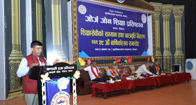 पोखरा । जोर्ज जोन शिक्षा प्रतिष्ठानले आफ्नो २९ औँ वार्षिकोत्सवका अवसरमा शनिबार पोखरामा आयोजित एक कार्यक्रममा ५ जना शिक्षासेवीलाई सम्मान गरेको छ ।