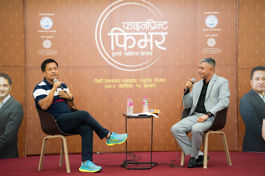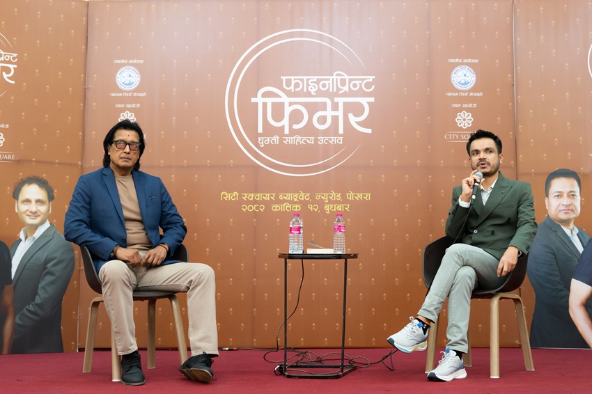 पोखरा । फाइनप्रिन्ट बुक्सको आयोजना र र्याण्डम रिडर्स सोसाइटीको सह–आयोजनामा पोखरामा बुधबार ’फाइनप्रिन्ट फिभर घुम्ती साहित्य उत्सव’ भएको छ ।