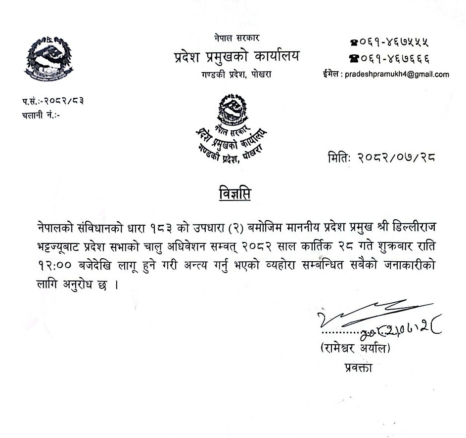 गण्डकी प्रदेशको अग्रणी अनलाइन गण्डक न्यूज विभिन्न प्लाटफर्ममा उपलब्ध छन्। सामाजिक सञ्जालहरूमा हाम्रो च्यानल सब्स्क्राइब गर्न यहाँ क्लिक गर्नुहोस्। जहाँ तपाईँ फेसबुक, ट्विटर, इन्स्टाग्राम, यूट्युब लगायतमा पनि हाम्रा सामाग्री हेर्न सक्नुहुन्छ। नयाँ खबर थाहा पाउनका लागि गण्डक न्यूज र हाम्रो अर्को आधिकारिक वेबसाइट गण्डकी न्यूज भिजिट गर्दै गर्नुहोला। साथै, माथि समाचार पढेपछि तपाईँको प्रतिक्रिया के छ? व्यक्त गर्नुहोला।