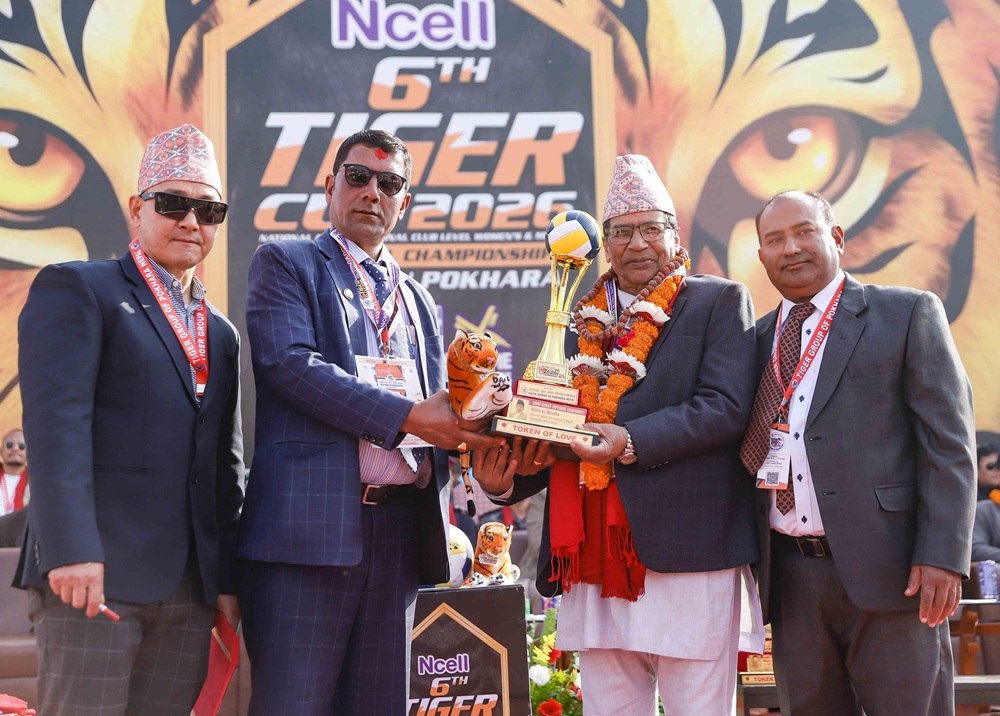 टाइगर ग्रुप अफ पोखराको आयोजनामा आजदेखि सुरु एनसेल छैटौं टाइगर कप राष्ट्रिय तथा अन्तर्राष्ट्रिय आमन्त्रित खुल्ला क्लब च्याम्पियनसिप महिला तथा पुरुष भलिबल प्रतियोगिताको शुभारम्भ गर्दै उनले खेल क्षेत्रको विकास राष्ट्र विकासको महत्वपूर्ण आधार रहेको उल्लेख गरे ।