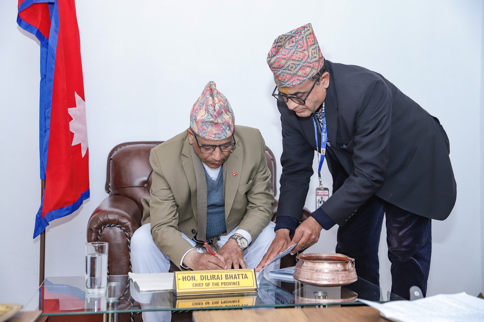नेपालको संविधानको धारा २९४ को उपधारा (३) अनुसार आयोगले आर्थिक वर्ष २०८१/०८२ मा सम्पादन गरेको काम कारबाहीसमेत समेटेर तयार गरिएको सातौं वार्षिक प्रतिवेदन सदस्य मोदीले प्रदेश प्रमुख समक्ष भट्टलाई हस्तान्तरण गरिन् ।