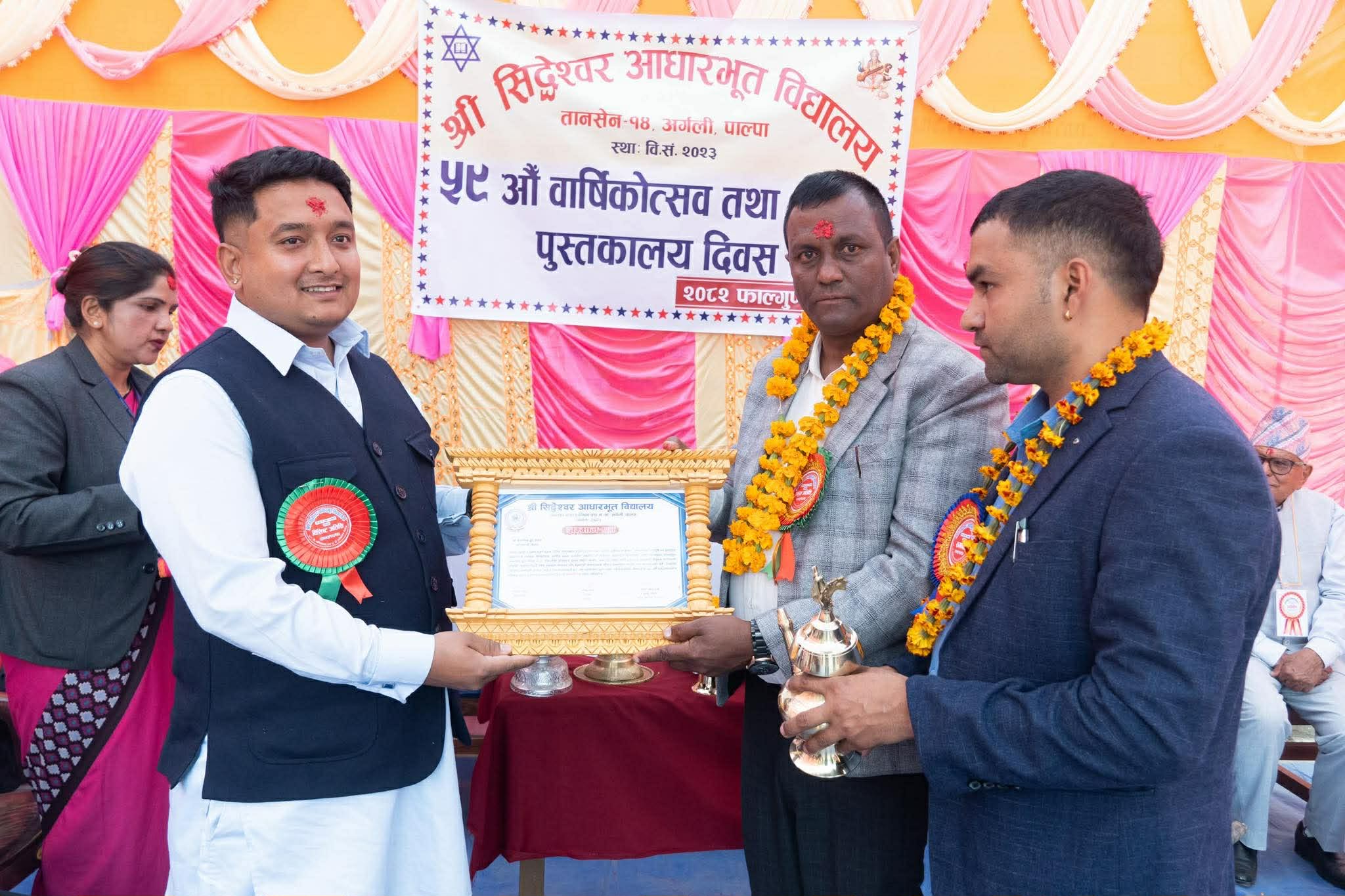 पाल्पाको तानसेन नगरपालिका वडा नं. १४, अर्गलीस्थित श्री सिद्धेश्वर आधारभूत विद्यालयको ५९औं वार्षिकोत्सव तथा १६औं पुस्तकालय दिवसको अवसर पारी कस्टमर ग्रुप नेपाल प्रालिले २ लाख ५० हजार रुपैंया बराबरको फर्निचर सहयोग प्रदान गरेको हो ।